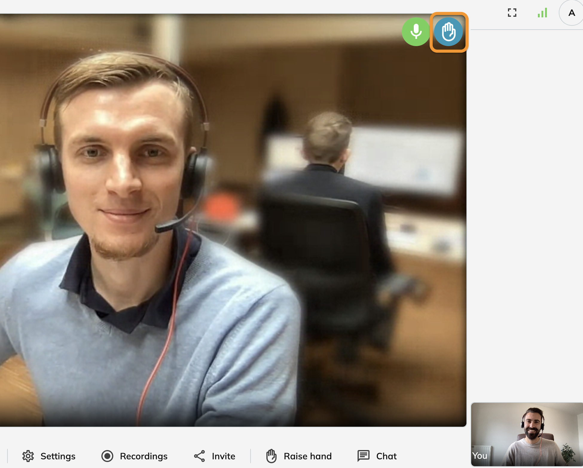 The participant who raises his hand deactivates it by clicking on the 'Raise hand' button