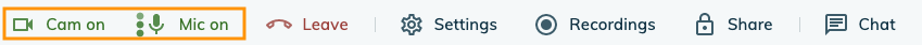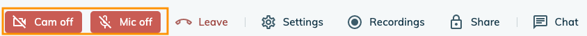 4. Click on 'CAM OFF' and/or 'MIC OFF' to start using your camera and microphone