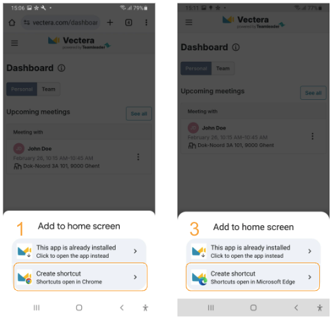 Vectera does not have a mobile app, but in 5 steps you can easily add the Vectera website as an app on your Android phone and create an easy shortcut for yourself. If you have an iPhone, you can check this help article.