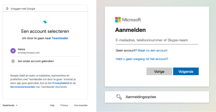 In beide gevallen kan men kiezen voor Google/Microsoft en daarna logt men in met hun Gmail- of Outlook-/Office 365-account.