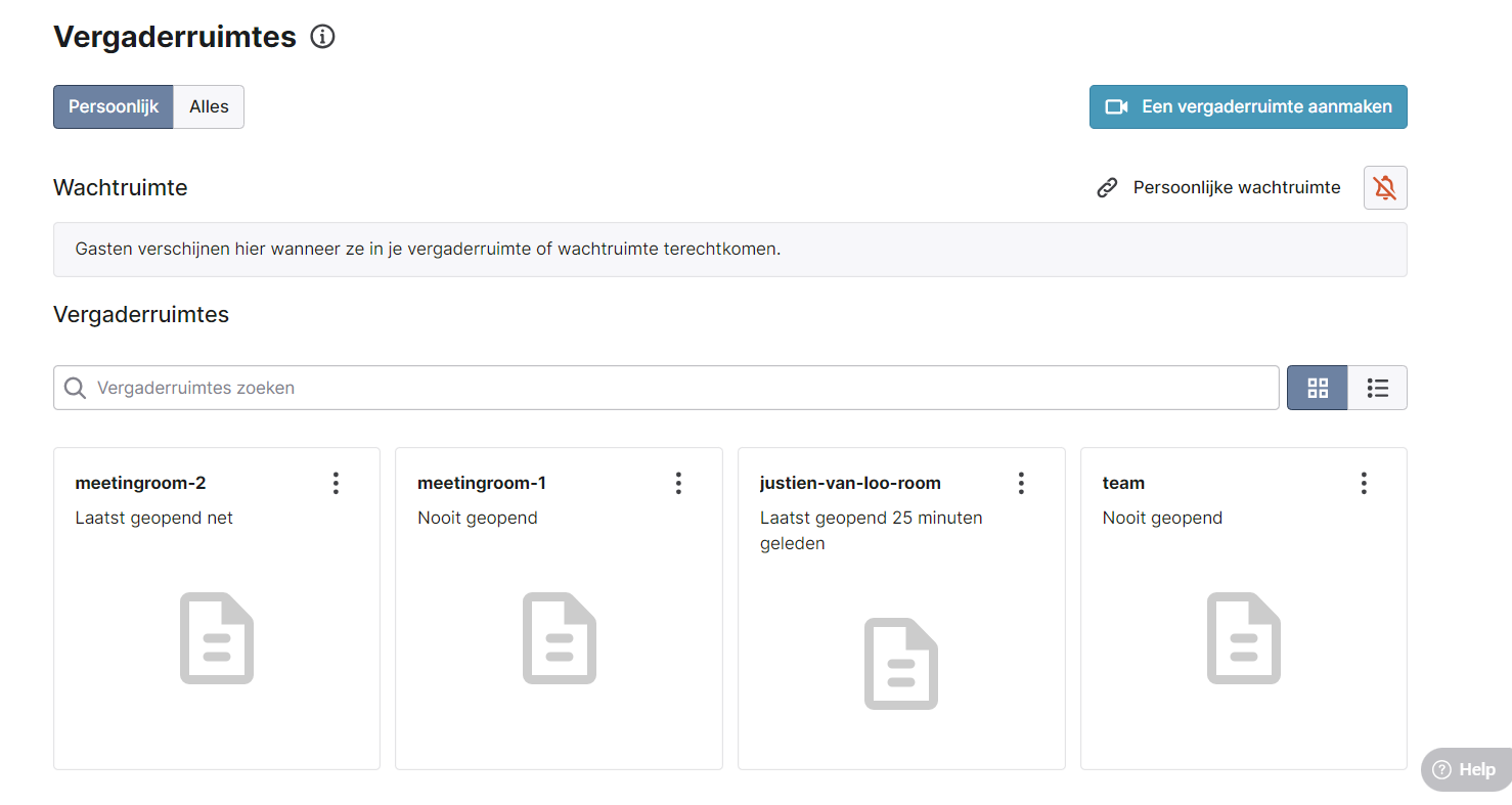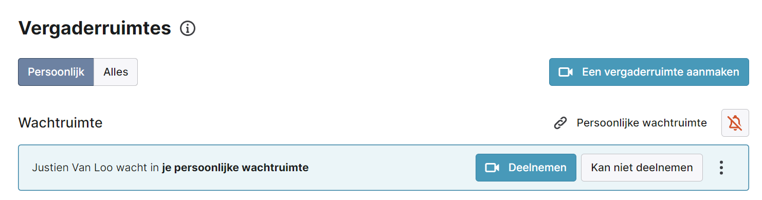 - Persoonlijk: Dit zijn alle vergaderruimtes waar jij de host van bent.