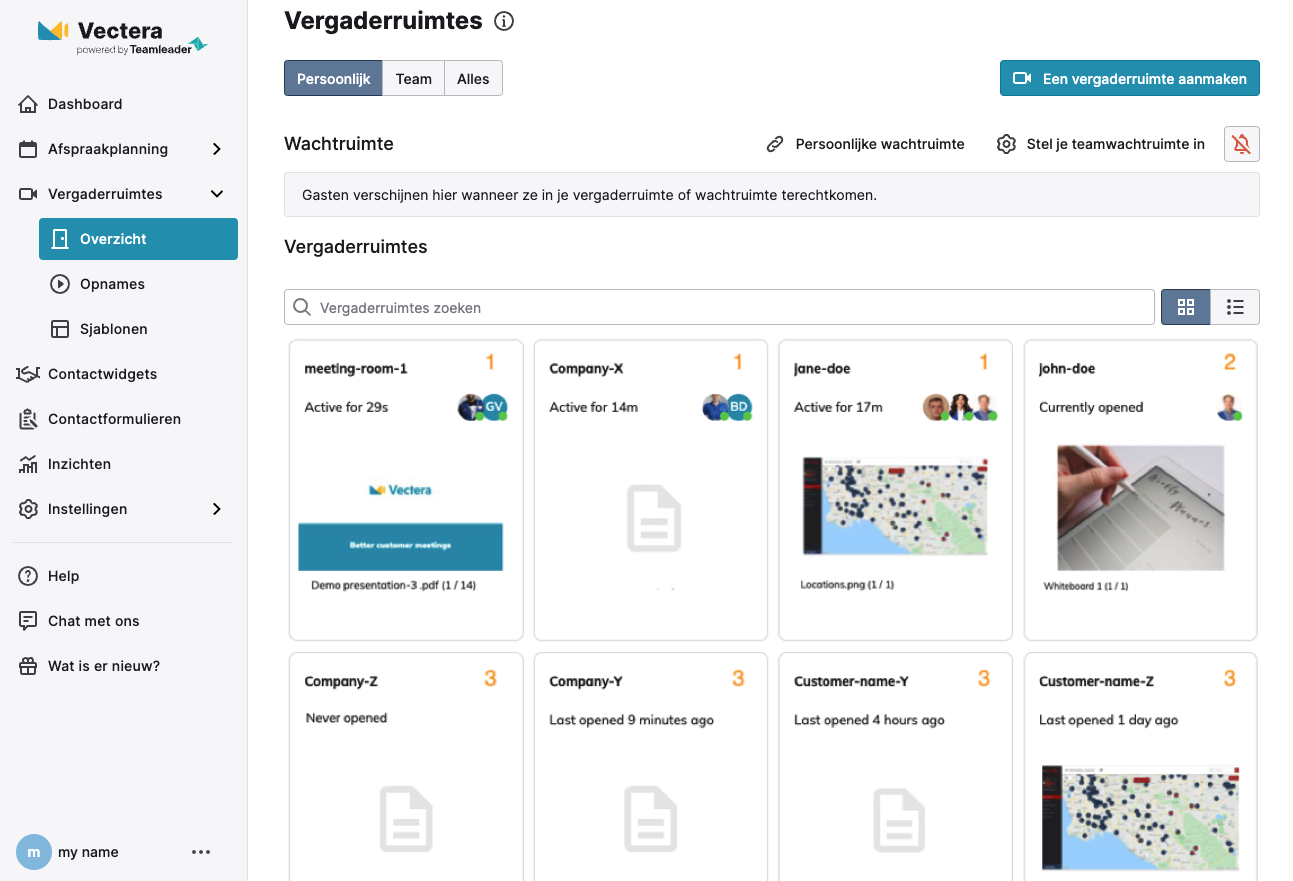 Dankzij de samenwerkingsfuncties, boekingspagina's en wachtruimtes kunnen teams eenvoudig geavanceerde klantengesprekken houden. Voor teammanagers is het vaak handig om een idee te krijgen van hoe afspraken verlopen en daarom hebben we het live overzicht van vergaderruimtes gelanceerd.