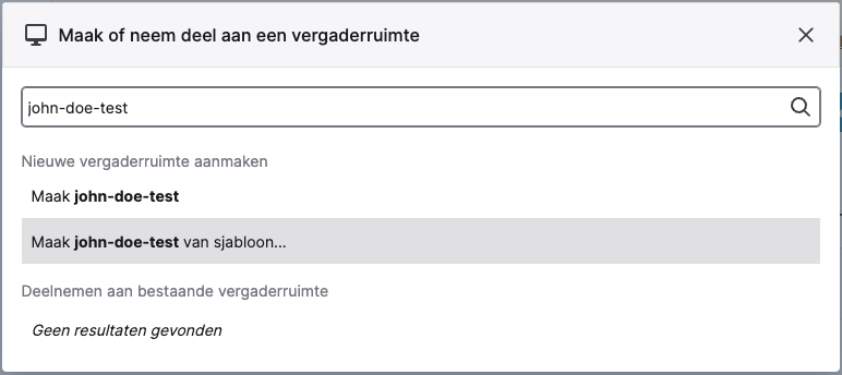 - Typ de naam van de vergaderruimte in die je wil aanmaken, vb. John-Doe-test.