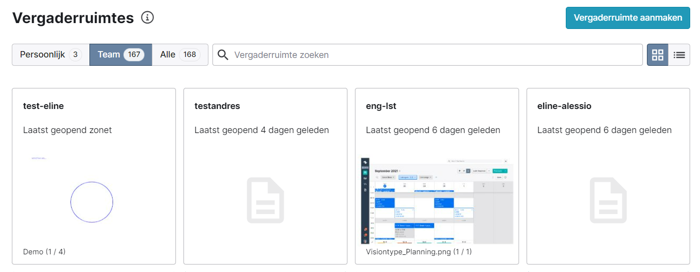 Opgelet: Als een vergaderruimte de status 'Moet aankloppen' heeft, dan zal deze niet verschijnen in 'Team'.