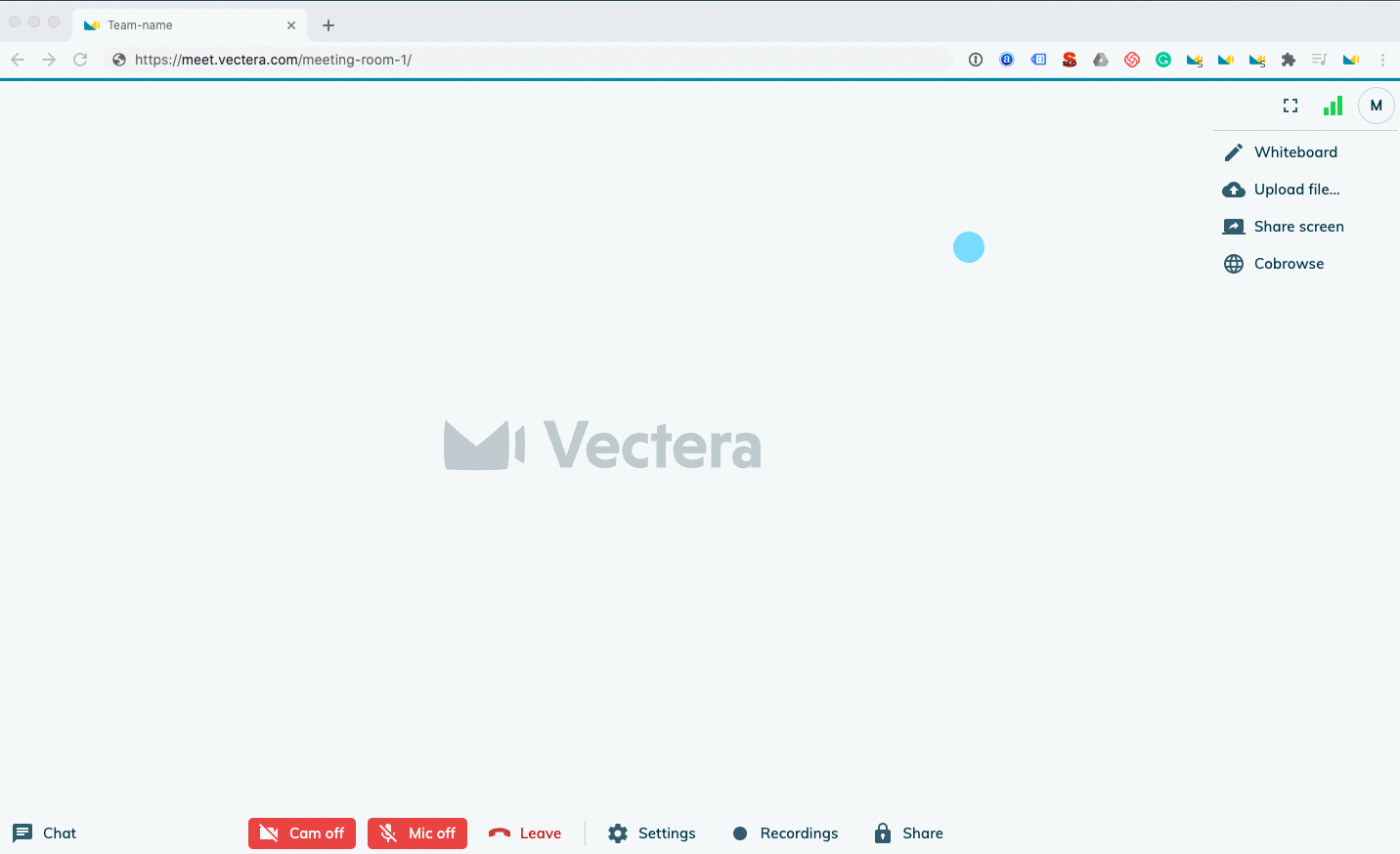 In de rechterbovenhoek van de meeting room, naast de weergave van de internetconnectie.